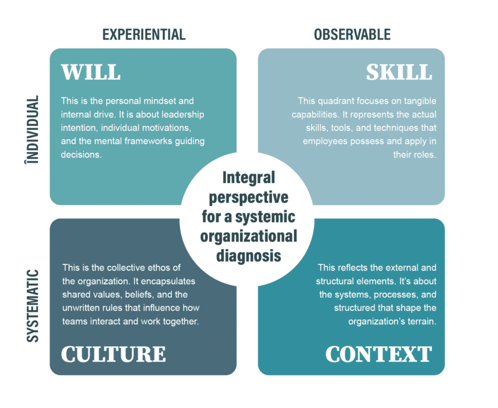 The value of the lenses is not purely on the side of diagnostics. It also provides a first hypothesis on potential actions. While challenges identified on the “Will” aspects may require coaching efforts, identified cultural barriers may require strong leadership intervention to re-build narratives of success.
