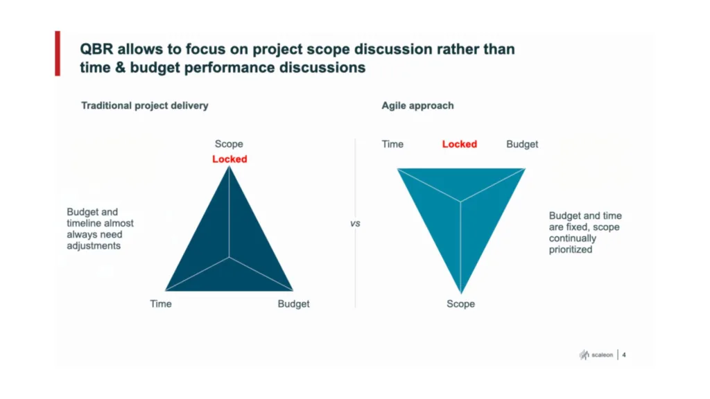 A further problem in strategic alignment is the focus on output rather than outcome. While output describes quantifiable, measurable results, such as the number of products sold, outcome describes the qualitative benefit or value created for the target group. QBRs help to shift the focus toward outcome by ensuring that strategic goals take into account not only quantitative but also qualitative aspects. This promotes a stronger connection between corporate goals and the actual benefit delivered to customers.